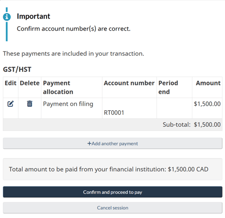 Use the correct payee/program type: Entering the wrong program (for example, personal tax instead of GST/HST) or mis-typing the BN can lead to your payment being applied incorrectly or delayed. A blog post warns: “Never use a generic ‘CRA’ payee if specific options exist.”
