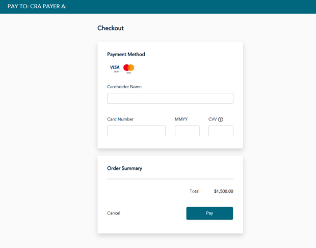 If your business wants to pay by credit card, My Payment will not work. You’d need a third-party service that accepts credit cards and submits to CRA.