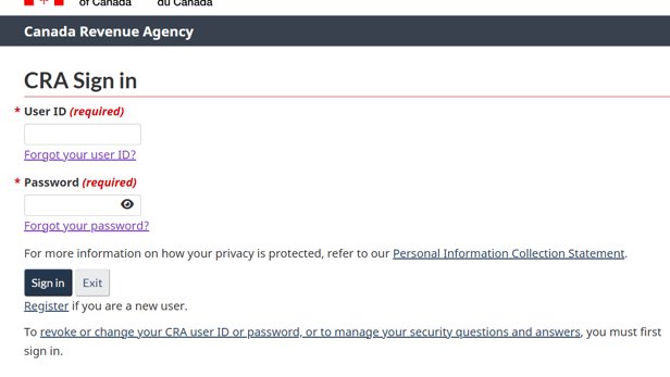 You can sign in using either your bank login (Sign-In Partner) or a CRA user ID and password created directly with the CRA.