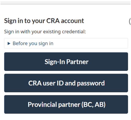 👉 https://www.canada.ca/en/revenue-agency/services/e-services/e-services-individuals/account-individuals.html - Accede con Sign-In Partner o CRA user ID