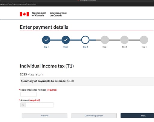- Selecciona el tipo de pago correcto (ej. impuestos personales, GST/HST)